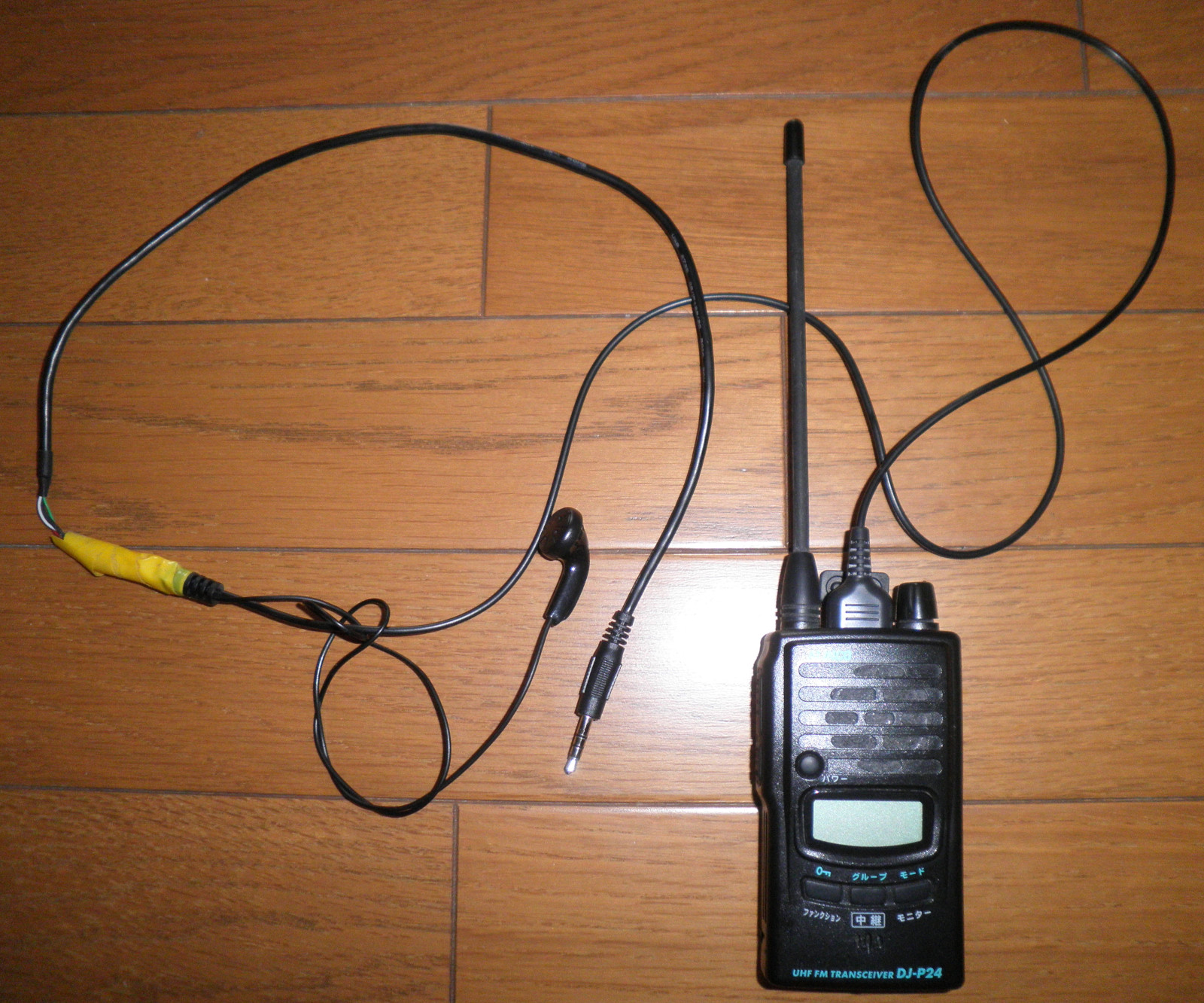 本来は、インターフェイスにはイヤホンは不要なのですが、作者はPTTコントロール部分の結線がうまくできなかったので、市販品のイヤホンマイクと合体させて動作を可能にしています。 |