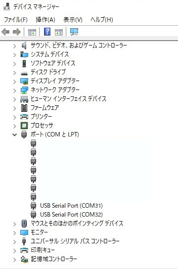 ポート(COMとLPT)内に、利用しているHAMSTIR ST2内蔵のシリアルポートを見つけて、COMポート番号をメモしておきます。画像の例では、COM31 |