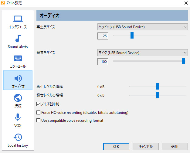 ※パソコンのサウンド設定(マイク)をZelloアプリのサウンド設定(録音デバイス)に一致させないと認識できない場合があります。 |
