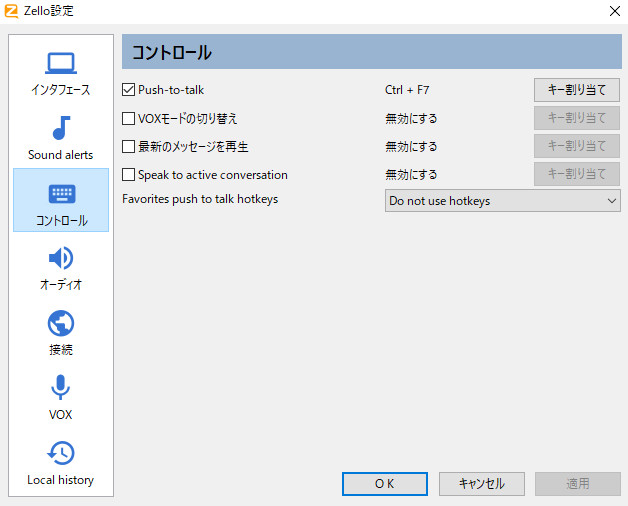 | <Zello for PCのコントール設定> |